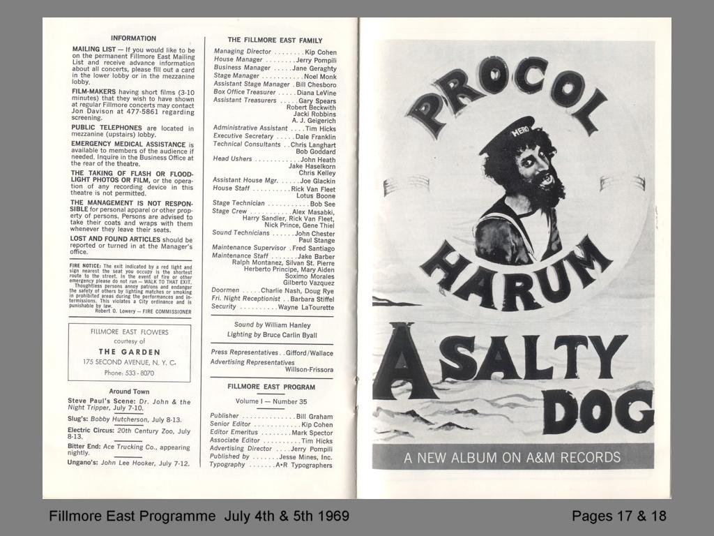 FILLMORE EAST PROGRAMME JULY 1969