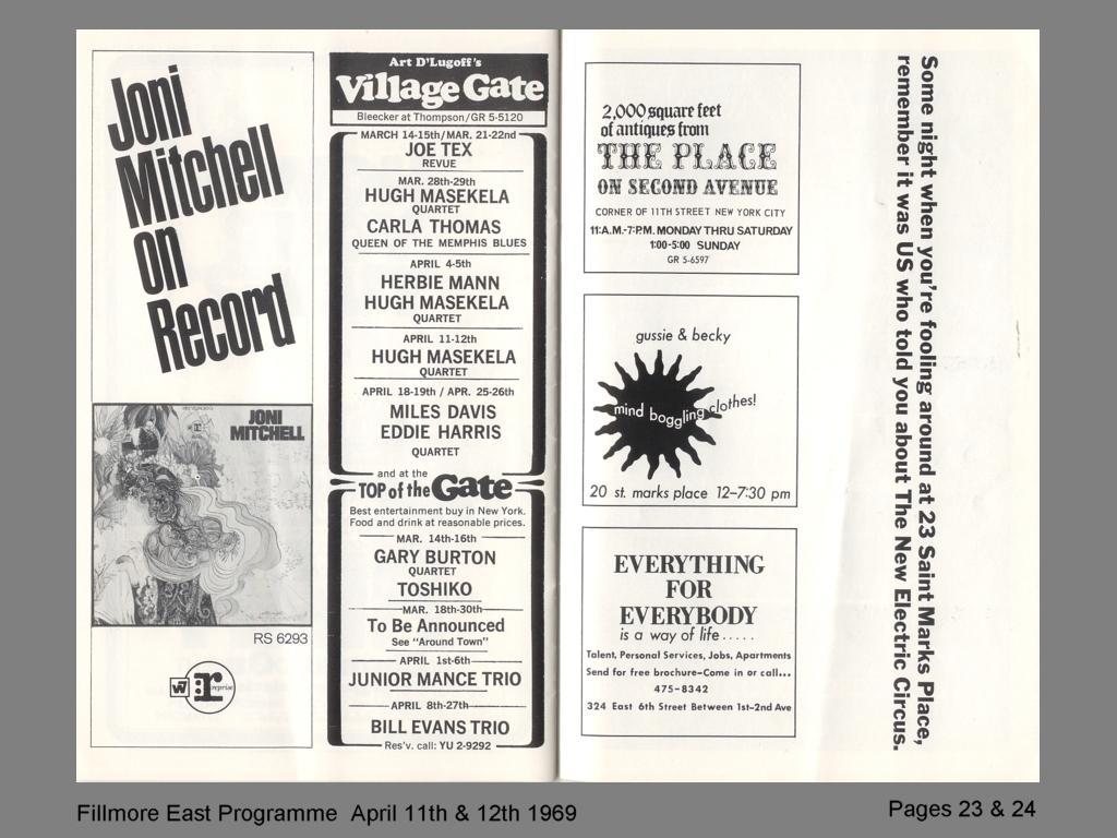 FILLMORE EAST PROG April 1969